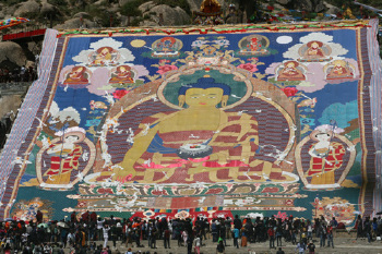每年一次的雪顿节,会有一个晒佛活动,把佛图像拿出来晒太阳,这是哲蚌寺影响力非常的大事情,西藏哲蚌寺按传统于藏历6月30日天满之日(公历8月29日)举行晒佛活动从早上8点至中午13点30分展出,5个小时30分的晒佛期间共引来信教僧俗群众和游客42万余人次,只有在这一天才有这样的活动。