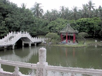 历史虽然已经过去了,建筑物也修缮过,但是依然可以看到到当时战乱的痕迹,始建于1889年的炮台山上有个一望月亭,这就是台中市旧城的北门城楼的遗迹,日本占领时为修路尽拆城门,为保护古迹,人们将仅留的北门城楼移建于此地,门楼四柱顶立,古朴庄重,翘首飞檐,十分壮观,门楼上方正中悬有“曲奏迎神”巨匾,这是黄承乙所题。