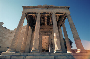 伊瑞克提翁神庙是雅典卫城另外一座知名建筑,作为培里克里的雅典卫城重建计划中的末环,伊瑞克提翁神庙与帕特农神庙展现饿恢弘不同,体现的是精致与巧妙,较为典型的就是举世闻名的6座少女像。少女像其实是神庙的六根主柱,为了达到承重和美学的兼顾,少女像被雕刻成头戴花环、留着浓密长发的少女外貌,完美解决这个建筑难题,当你站在少女像下,看到的不仅仅古人的美学,更是古人的智慧。而位于主殿的戎装雅典娜神像,一年只需加油一次。