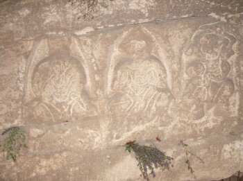 三佛洞又名三身佛洞,依照《大乘义章》的解释,这三尊佛像分别表示释迦摩尼的三个不同的化身,其中一尊是法身佛,名“卢遮那佛”表示真理就是身受法乐的聪慧佛身,左面的一尊是报身佛,名“卢舍那佛”表示真理而身受法乐的聪慧就是佛身,右面一尊是应身佛,名叫“释迦摩尼佛”,表示随缘教化不同众生的佛身,三个佛身的雕刻技艺非常的精美,法身带着皇冠,双手合十,相互对称,由于常年的风雨腐蚀和认为破坏,三佛洞已看不真切。