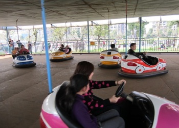 碰碰车是一种机动游戏设施。设备包括碰碰车车辆及一个室内的场地。在碰碰车室内场地的天花板上一般都会装有通电的电网,在驾驶时,车子由链接到天花板的垂直电杆取电,用脚踩加速用的脚踏来启动车辆,用方向盘来控制车子行驶的方向。在众多的游乐场或则公园中都会看到碰碰车的身影,因为刺激好玩,所以深得游客们的喜爱。