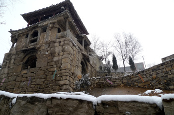 清凉阁是一个富有传奇色彩的建筑,有人称之为“神仙阁’,就在于家村的东口,是于家村的标志性建筑。相传是个力大无穷的村民以一人之力所建,在建第二层时,不幸受伤病故,如今清凉阁底层的石板路上可见当时受伤后留下的血迹。清凉阁建筑风格独特,雕梁画栋、 结构新颖,如此高大的建筑物,没有根基,没有辅料,以天然石底为基础,耸立于村首,蔚为壮观。