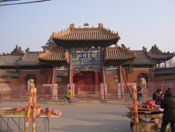 安国市是在历史上是著名的中药材集散地,被称为“药都”。药王庙祭祀的是汉光武帝的二十八宿将之一不逊彤,他精于医理,又经常为百姓治病,深得百姓拥戴。药王庙庙前有两根铁铸的旗杆,传说旗杆上有多高,下就有多深。庙内主要有药王墓、药王正殿、寝殿等,配殿里,供奉的是扁鹊、华佗、张仲景等十大名医,是我国现存较大的祭祀古代医圣的建筑群。