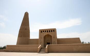 苏公塔属全国重点文物保护单位,位于吐鲁番市东郊2公里的木纳村,它是清朝名将吐鲁番郡王,为了恭报清王朝的恩遇,并使自己一生的业绩流芳后世,而自出白银7000两建造,其次子苏来曼建成于1777年。苏公塔是一座造型新颖别致的伊斯兰教古塔,它是新疆境内现存较大的古塔,高44米,塔基直径为10米,呈圆锥形。塔内有螺旋形台阶72级通往顶部。