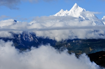 梅里雪山是以卡格博峰为中心的一片雪山,这些雪山里海拔6000米以上的就有13座,被人们称为“太子十三峰”,这十三座雪山将卡格博峰团团围住,使得卡格博峰看起来更加的雄伟壮观,梅里雪山里较著名的就要数明永冰川和雨崩了。看到它们你会忍不住地要赞叹一下大自然的鬼斧神工。每年在当地中秋节过后的10~20天里,月亮又圆又亮,非常适合喜欢摄影的游客去采风。