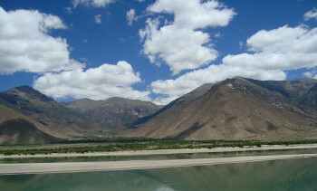 雅鲁藏布江海拔5590米,流域面积935000平方公里,年径流量14亿立方米,它是世界上较高的大河,发源于喜马拉雅山脉,并且青藏高原南部,印度,孟加国。雅鲁藏布江被人们称为“天河”,它从雪山冰峰间流出,奔向藏南谷地,滋润着这一带的红花绿树,哺育着在这里繁衍生息的藏族人民,让他们在这里创造出绚丽灿烂的藏族文化。