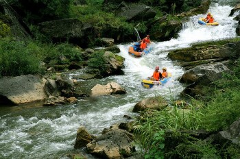 五指山峡谷漂流在就如海南五指山的神秘一样让人向往,这里天高水长,阳光妩媚,四面青山环绕,迎面而来的是一种久违的期待——期待惊险、刺激,期待与大自然的搏斗。