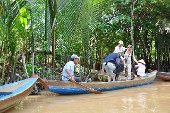 木船在宽阔滚滚的湄公河河面上穿梭,两岸尽现原始雨林,体会南越的自然精彩风光。