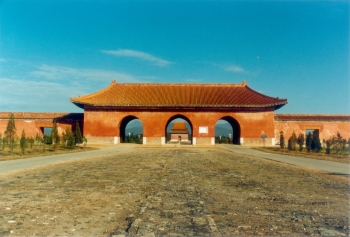 菩陀峪定东陵是慈禧的陵寝。其中隆恩殿及东西配殿的用料都非常考究,且做工精细,木质材料都采用的名贵的黄花梨木。殿内的墙上雕的是寓意着“万福万寿、福寿绵长”的图案,三殿有64根露明柱子,上面雕刻着盘绕的镀金铜龙。栏板、望柱、抱鼓石上全部都是浮雕的龙凤呈祥、海水江崖等图案。殿前的丹陛石用浮雕加透雕的技法,将丹凤凌空,蛟龙出水的动态刻得维妙维肖,是一件不可多得的石雕杰作。