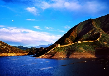潘家口、喜峰口等的长城古堡都在水平面以下,是燕山深处一颗璀璨的明珠。在这里,你既能看到粗犷的北方山脉,又能欣赏到像江南水乡般的秀丽景色。古代人民智慧的结晶万里长城和现代文明的引滦入津工程在这里完美结合。万里长城蜿蜒曲折,在此处隐入水底,又在对岸挺立而起,形成了一条独特的水下长城。喜峰湖碧波荡漾,两岸更是层峦叠翠,绿树葱葱。喜峰口是著名的古战场,此地向来是兵家必争之地,其重要性可想而知。