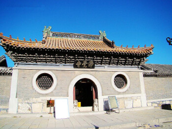 门殿的前檐门匾上刻着 “净觉寺”三个大字,这块门匾也被写进了《中华名匾》,并且是在首页的显眼位子。门匾上的净字用的是三点水,是因为佛门三净:净眼、净心、净耳,净觉寺以“净业、觉悟、真空”而得此名。门殿是无梁殿,是净觉寺的一大奇观,不仅无梁,而且也无檩无柱,全殿除了门窗,都不是木结构的,它的沿椽、飞椽、等等全部都是仿木,是用青砖雕刻而成。门殿的中间供奉的是弥勒佛,大肚弥勒心胸坦荡,办事耿直,吃的饱,睡得着。传说,弥勒佛能够预测福祸,因此又被称为吉祥佛。