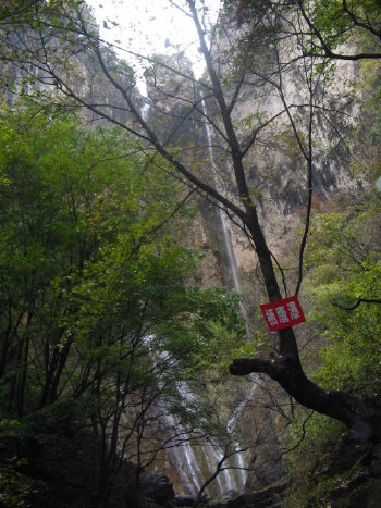 栖鹰瀑是云梦山较大的瀑布,垂直落差达到105米。就像一只巨大的山鹰,从远处归来,两旁的山壁是还未收起的翅膀,中间多棱的石头也就是鹰头。就像是被飞瀑吸引,来饮泉水的。鹰头的两旁,白龙溪从夹缝中落下,飘飘洒洒,在斜坡处形成百条银蛇,水花飞溅,似珍珠,似烟雾,似雪粒,令人叹为观止。不禁让人想起“飞流直下三千尺,疑是银河落九天”。