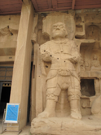 165号窟是北石窟寺的一座石窟,是较大的洞窟,也是较精美的洞窟,始建于北魏时期。165号窟坐东向西,走进洞窟,你就会被这些栩栩如生的雕像所震撼。八米多高的佛像,立于一米多高的祭台上,显得殿堂中来此朝拜的信徒渺小无比。北魏时的工匠们大胆的突破传统,采用了拱形支撑和三角形稳定等原理,为我们呈现了这么一个长方形的佛殿式石窟。