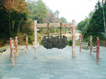 中国古代把成对鸳鸯比作夫妻,在鸳鸯湖畔,月老祠就是为情侣们祈福许愿的地方。月老祠门前有一把巨型铜锁,被称为同心锁、婚缘锁。相传,夫妻情侣在上面锁上同性锁,是祈求百年好合;单身的人锁上婚缘锁,则能保佑在不久找到称心的另一半。上锁后,钥匙则要投入鸳鸯池中,这样情人们的祈福会被月老守护,称为比翼双飞的一对。