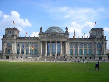 柏林国会大厦位于柏林市中心,集哥特式、巴罗克式、古典式等多种建筑风格,是德国统一的象征。在一次世界大战期间,国会大厦上被镶上了“为了德意志人民”的铭文。每年德国联邦议会在这里举行。国会大厦也是德国比较受欢迎的旅游胜地,其屋顶呈穹形。