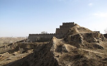 镇北台东侧有同期所建的“款贡城”,依山踞险,居高临下,为蒙汉官方敬献贡物、赠送礼品的城池。城池险要,与镇北台构成了完整的长城建筑体系。台西南有明代易马城遗划,是蒙汉民间自由贸易的城池,也是蒙汉民族和睦相处的历史见证。各层均表砖包砌,台上边均砌砖垛口并砌有望口,现苔痕班驳,显得格外古朴巍峨壮观。