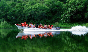 大青沟自然保护区内地貌奇特,树林绵密,草木茂盛,泉水丁冬,风光秀美,气候宜人。盛夏时节步入其中,会让人暑气顿消,心旷神怡。广大游客深爱的地下原始森林景观、举世罕见的沙漠峡谷景观、林草相间的原野风光原野风光都在这里有所展现、游客们乘坐快艇在山水之间徜徉,享受速度和自然的完美结合。