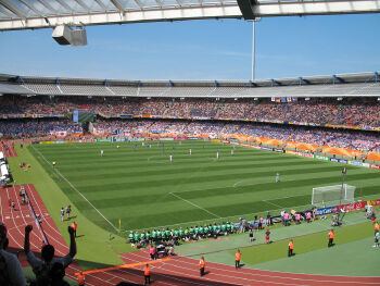 法兰克人体育场原名“城市体育场”,在1928年就开始使用,曾在1933年作为希特勒青年团的步操训练场地。体育场经过多次改造,增加了观众席,扩建蓄水池,还降低赛场以满足观众视线。2006年世界杯在这里举行了部分比赛,随后也举办过多场联合会杯赛事。