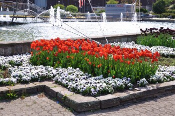 莱茵花园中绿草如茵,每到春天,各色鲜花竞相盛开,有其是郁金香,有的鲜红似火,有的紫色高贵,还有的橙黄如蜜……一簇一簇交织在花坛中,组织了无色彩带,给莱茵花园带来勃勃生机。漫步在莱茵花园中,游客们仿佛就成了欢乐的小蜜蜂,在花丛中飞舞。郁金香的花语是博爱、高雅、富贵、聪颖,这些正符合了莱茵花园的气质。