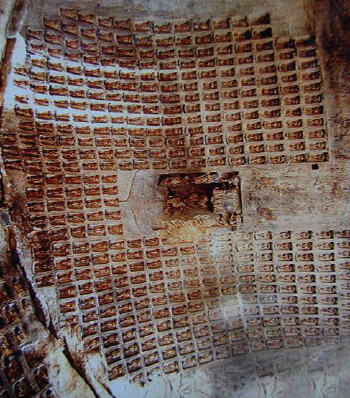 千佛洞石窟依山坐西北向东南,洞口在距地面约10米高的石崖上。石窟殿内及两侧石壁上林立这佛像浮雕460余尊,林林总总,规模盛大,有释加牟尼、文殊、普贤、阿难、迦征、十八罗汉等佛像,令人眼花缭乱。窟内有红砂石碑一通,为重修碑记,系明成化十四年立石,可惜因为距今历史过于久远,大佛多残缺,或断头、或缺臂,无一完整,令人惋叹。