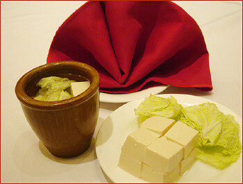 “泰安有三美,白菜豆腐水”。历代帝王登泰山,均“食素斋,洁身养性”,以示虔诚之心。泰安白菜个大心实,质细无筋;泰安豆腐,浆细质纯,嫩而不老,有“神豆腐”之称,“凌晨街街梆子响,傍晚户户豆腐香”的景象是山城的一大特色。;泰山泉水,清甜爽口,质地清纯,喝起来丝毫不亚于外面卖的高档矿泉水。