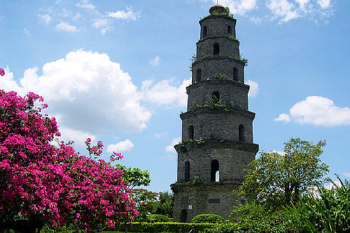 见龙塔是一座七层的风水塔,塔上共有二十八个实门和二十八个假门,每层有八个实门和假门,层与层之间实门与假门相错,给人一种虚虚实实交错而上的感觉。见龙塔的内部是空心的,内壁会在层与层之间设楼梯。见龙塔不仅设计独特,就连造塔的材料也是非常的独特,用来造塔的塔砖是用糯米加上草木灰等原始建筑材料粘合而成的。