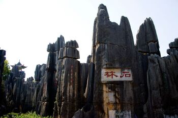 石林是路南石林风景区的主体部分,也是较为著名的一个风景名胜。在整个石林景区里,遍布着上百个由巨石群组成的黑色大森林,在众多巨石群中有的独立成景,有的则纵横交错,连成一片,蔚为壮观。除了壮观的石林景观之外,这里还有众多云南少数民族的民俗活动表演,供游客们观赏。
