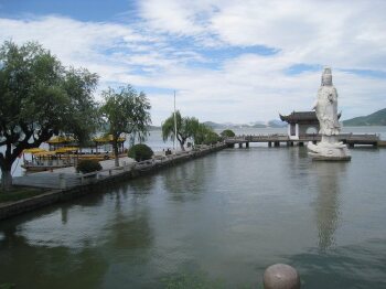 霞屿锁岚是东钱湖环湖的十景之一,湖心有不少孤独屹立的绿洲,这些绿洲与霞屿、烟屿遥相照应,形成了湖中双壁,这里东边靠着福泉山,山峦终年郁积,湖面又常常水气弥漫,于是便形成了阵阵雾气,这些雾气盘旋在湖上,给人一种湖心小岛将雾气锁住的感觉,故称霞屿锁岚。