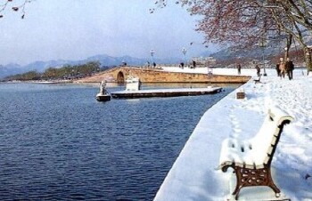 每当瑞雪初霁,站在宝石山上向南眺望,西湖银装素裹,白堤横亘雪柳霜桃。断桥的石桥拱面无遮无拦,在阳光下冰雪消融,露出了斑驳的桥栏,而桥的两端还在皑皑白雪的覆盖下。依稀可辩的石桥身似隐似现,而涵洞中的白雪奕奕生光,桥面灰褐形成反差,远望去似断非断,故称断桥残雪。
