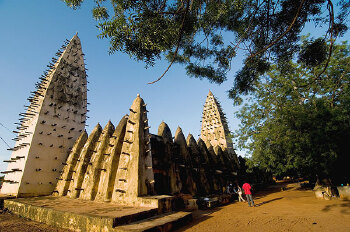 大清真寺通体黄色,墙外都有突出木头做结构材料,外墙有着一些的突出的墙垛,两座尖顶主塔和外墙密集的承力墙垛子,是这建筑的主要特色,显得与众不同。