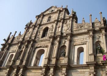 大三巴牌坊,为1580年竣工的圣保禄大教堂的前壁,此教堂糅合了欧洲与东方风格而成,体现出中西合璧的艺术。大三巴牌坊建筑由三至五层构成三角金字塔形,有牌坊十字架,还有圣婴雕像和被天使、圣母塑像,都充满着宗教气氛。牌坊上雕像栩栩如生,堪称“立体的圣经”。游览大三巴牌坊,可以欣赏巍峨壮观的前壁,还能浏览壁上浮雕及其意义。十字架下是一具鸽形铜像,像的旁边围有太阳、月亮及星辰的石刻。铜鸽之下是一个耶稣圣婴雕像。从大炮台城堡下望,可以看见整座教堂原迹和石刻。大三巴牌坊已经成为游客澳门之行的必到之地。