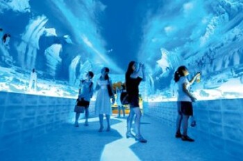 极地体验馆分为极地探险长廊、神秘冰雪世界和穿越冰海地带等部分,游客在这里可以享受到不同于一般的冰雪世界的奇妙之感。