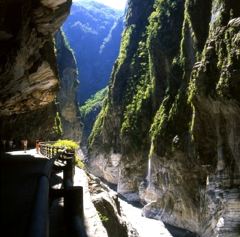 九曲洞,位于台湾太鲁阁国家公园,也是中横公路上的一大奇景,路经的中外游客对其叹为观止。中横公路穿山凿洞而建,一路上各种尖峰绝壁,断崖奇石,道路在坚硬的岩壁中穿行,蜿蜒曲折,为人力与大自然鬼斧神工的奇妙结合。在此路段游客可以舍车就步,更好的欣赏壮观的景色,赞叹大自然劈山的威力。九曲洞这里还有奇观——鱼跃龙门,近看像是一条大鱼正在奋力上溯,溪水顺着鱼身流淌下来,水瀑纷飞,十分生动形象。