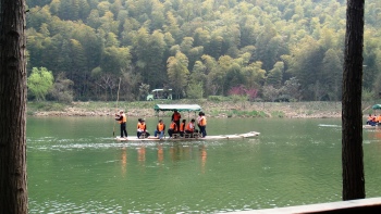 在南山竹海景区,一排排竹筏飘荡在翠绿清新的静湖湖面上。坐上竹筏,轻轻摇着着浆,竹筏缓缓拨开水面,碧波荡漾,慢慢向四周散开来。泛舟湖上一面呼吸着湖面上竹筏的清香,一面感受这带有水的湿润的清新空气,湖岸是一望无际的竹海,清风佛面,那散发着清凉静雅的气息扑面而来,正所谓“舟行碧波上,人在画中游”,此景如画,竹海水韵令人沉醉其中。翠绿的竹海,秀美的湖水,这等恍若仙境般的美景,怎能容许错过。
