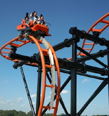 愤怒的小鸟是亚洲唯一的Elloco过山车,你可以在这里同时痛快感受高度与速度的双重刺激。上一秒钟,似乎辽阔的天空还在身旁,但顷刻之间水平线已倒转倾斜,飞车从半空之中翻腾滑落。当你在高空之上以120°向下极速俯冲,180°倾斜边缘转弯,感受到的可不止风驰电掣、心悬一线的反离心力这么简单。刹那间极速往返高空和地面之间,简直是天旋地转般的快,十分震撼人心。