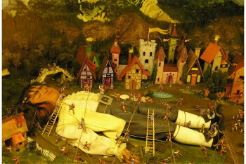 小人国”内有格列佛的“大小人国”游记,格列佛游记写的是格列佛在小人国经历的遭遇。一次,他所乘的羚羊号不幸在塔斯马尼亚岛遇难,他漂流到利立浦特岛上。格列佛和利立普特人的大小比例为十二比一,那里的居民身高仅6英寸,格列佛置身其中,就像一座“巨人山”。起先他误闯小人国被小人们捆了起来,后来由于他在小人国表现良好并答应接受某些协议,小人国的国王同意恢复他的人身自由。这时候,该国正遭到另一小人国侵略,格列佛跋涉过海峡把敌国舰队大部分的船只掳获来,迫使敌国遣使求和平。尽管格列佛立了大功,但是后来因为在几件事情上得罪了国王,狠心的国王决定恩将仇报刺瞎他的双眼,同时将他活活饿死。格列佛得知消息后,仓皇逃向邻国,修好一只小船,起航回家,。维多利亚“小人国”主题乐园里的声光效果,各种逼真的场景再加上动画的辅助作用使游客仿佛真的来到了格列佛游记里“小人国”的童话世界氛围里。