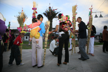 火把节以丽江大研古城较为热闹,纳西人按古规一连要过三天的火把节,点三个晚上的火把。每天门前要点一支柱子般又粗又大的大火把,寨子里的青年们个个拿着又细又长的小火把,沿着田埂、山路,边走边唱,直到深夜。火把燃得越旺,就越吉利,人们越高兴。时间:每年农历6月25日至27日