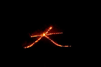 大文字五山送火的由来相传与盂兰盆会祭祖、安慰亡灵的习俗有关。大文字五山送火是在环绕京都盆地群山的半山腰上,用篝火描绘出巨大文字的活动,是京都夏天最为壮观的仪式,也宣告了夏天的結束。当天夜晚8点会在五座山上同时点燃篝火,分别是东山如意岳的“大 文字”、松崎西山与东山的“妙、法”、 西加茂船形山的“船形”、金阁寺附近大北山的“左大文字”以及嵯峨曼陀罗山的“鸟居形”,点火时间约30分钟。