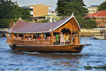 仿泰式古游船在白天和晚上都载着游客在河上穿行,当地人划着小船售卖特色水果或者饰品、特色小吃。看着风景,吃着美食,跟身边的人畅聊,乃人生较大乐事。