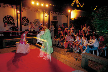 昆曲起源于江苏昆山一带,是一种歌、舞、介、白各种表演手段相互融合的综合艺术,是现今中国乃至世界现存较古老的具有悠久传统的戏曲形态。它的演唱本来是以苏州的吴语语音为载体的,唱腔华丽婉转、念白儒雅、表演细腻、舞蹈飘逸,加上完美的舞台置景,具有极高的美学趣味和艺术创造力。听昆曲还是要到苏州,在小桥流水的深远意蕴中,才能体味到那缠绵婉转、悠远绵长的万般风情。