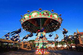 各种大型户外娱乐活动水上乐园,旋转木马、摩天轮等一应俱全。此外,晚上还有精彩演出供应。