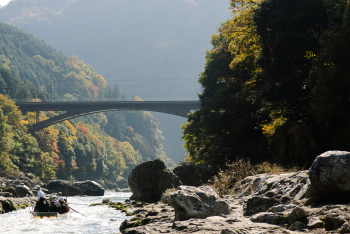 游览保津川,除了声名在外的嵯峨野观光小火车,就是保津川游船(也被称为保津川漂流)了。这条古老的水道,在历史上是著名的水运要道,而如今,则是全日本乃至世界上著名的“顺流游船”。 每年有近30万游客千里迢迢来到这里,就是为了饱享四季独特的自然风光,以及体验漂流的惊险与刺激。 保津川游船从京都市右京区嵯峨亀ノ尾町的乘船点(距离嵯峨野观光小火车嵯峨野站不远)出发,顺流而下,抵达邻近的龟冈市保津町下中岛,全长大约有16KM,全程2小时左右。 游船由3至5名船工熟练操控,一路上,不仅可以欣赏春天的樱花、夏天的新绿、秋天的红叶等四季各异的风景,还能眺望由巨岩和奇岩构成的绝景,享受在这种既有深渊又有激流、富于变化的溪流才能体验到的刺激。