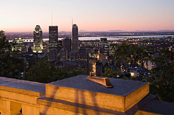 蒙特利尔的皇家山公园坐落于市区中心海拔两百三十三公尺的皇家山坡顶,是市内最大和最好的公园,全园满覆绿树,小鸟啾啾,调皮的松鼠跳跃其间,生意盎然。 从山顶的几座瞭望台俯望,市区林立的高楼大厦、纵横交错的街道、圣劳伦斯河秀丽的姿容,都可一览无遗。另外,公园还是蒙特利尔最美的赏枫胜地。