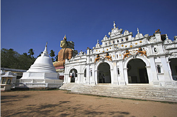 阿输迦拉马雅寺是斯里兰卡著名佛寺,用来纪念印度孔雀王朝阿育王(又译阿输迦王)派其子摩哂陀到斯里兰卡弘扬佛教而建。寺内有各种不同姿态的佛祖释迦牟尼像,其金碧辉煌,佛像高大、栩栩如生、朱红翠绿,是典型的印度艺术美。寺内还有一棵菩提树,使得这里更加庄严。