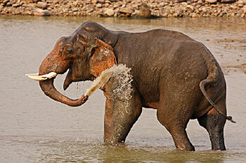 卡图加斯托塔观看驯象沐浴嬉水表演