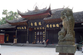 报峨嵋山的众多寺庙里,报国寺是入山的门户,是游峨眉山的起点。这里寺周楠树蔽空,红墙围绕,伟殿崇宏,金碧生辉,香烟袅袅,磬声频传。此寺坐西向东,朝迎旭日,晚送落霞。前对凤凰堡,后倚凤凰坪,左濒凤凰湖,右挽来凤亭,恰似一只美丽、吉祥,朝阳欲飞的金凤凰。山门前有一对明代雕刻的石狮,造型生动,威武雄壮,就象左右门卫,守护着这座名山宝刹。