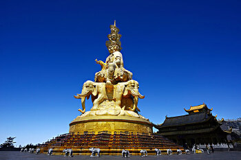 十方普贤圣像是金顶的中心,十方普贤圣像为铜铸镏金工艺佛像造像,十分壮观。