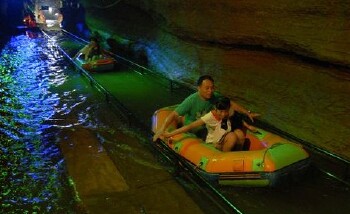 沂水地下大峡谷十分出名的游玩项目就是地下漂流。大峡谷的地下漂流安全系数比较高,因为水流较平缓,就像泛舟于平静的湖面之上,还能欣赏溶洞内的风景。6、7月是游玩的绝佳季节,溶洞内比较凉爽,游客们可以在漂流的时候和同伴们打水仗,别有一番趣味。