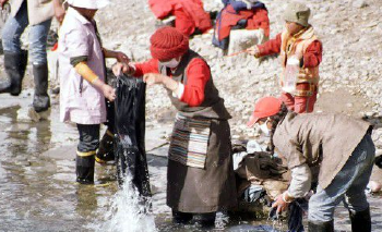 每年藏历七月上旬,在西藏,在拉萨河畔,从城市到乡村,从牧区到农区,都有一个群众性的洗澡活动。这种一年一度的洗澡活动,要集中进行一个星期,所以,这是藏族独有的沐浴节,也叫沐浴周。在这七天中,从垂髫的娃娃,到白发苍苍的老人,都要下河洗澡,这已成为藏族群众传统的风俗习惯。时间:藏历7月6日-12日。