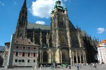 圣维塔大教堂(Katedrala sv. Vita)是布拉格城堡很重要的地标,是布拉格王室加冕与辞世后长眠之所。教堂入口左侧就能看到彩色玻璃窗后穆哈的作品,继续往前是金碧辉煌的温塞斯拉斯礼拜堂,教堂内壁均用壁画和金彩装饰。